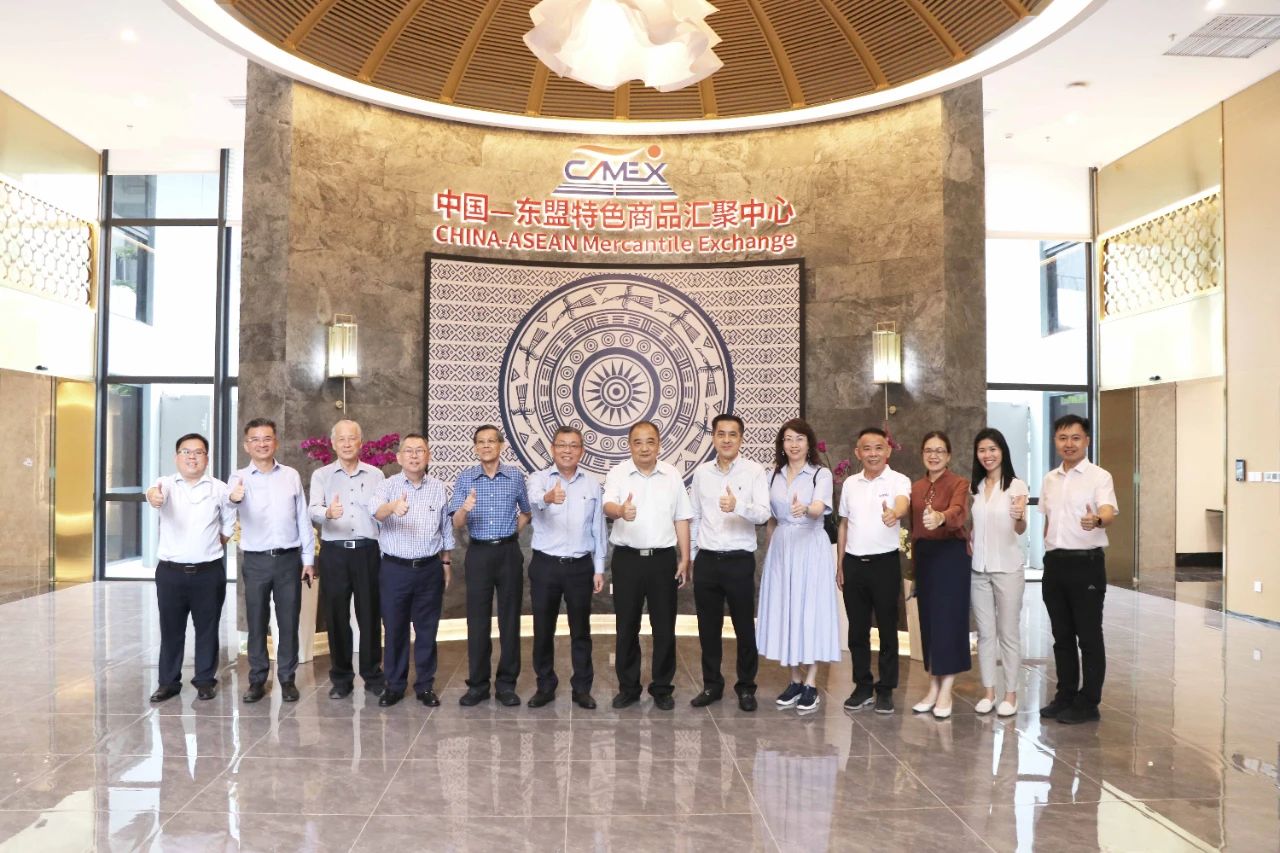 2023年6月27日,廣西中馬欽州產(chǎn)業(yè)園區(qū)開發(fā)有限公司副董事長、馬中商務(wù)理事會董事拿督馬漢坤一行到中新南寧國際物流園(以下簡稱“中新物流園”)和中國—東盟特色商品匯聚中心(以下簡稱“匯聚中心”)考察,廣西新中產(chǎn)業(yè)投資有限公司總經(jīng)理施國維熱情接待了考察組。