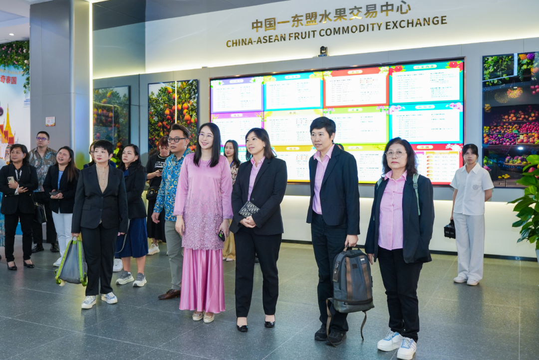 隨后,代表團(tuán)走進(jìn)水果交易中心展廳,詳細(xì)了解廣西本地水果產(chǎn)業(yè)特點(diǎn)及中國(guó)與東盟水果貿(mào)易的發(fā)展現(xiàn)狀與成果。代表團(tuán)提到,馬來(lái)西亞作為東南亞重要的水果進(jìn)出口國(guó),果品資源豐富,尤其以聞名世界的貓山王榴蓮為代表,且馬來(lái)西亞大會(huì)堂總會(huì)聚集了大量果商,她們期待未來(lái)雙方能進(jìn)一步拓展溝通與合作渠道,并對(duì)與水果交易中心的合作充滿信心。