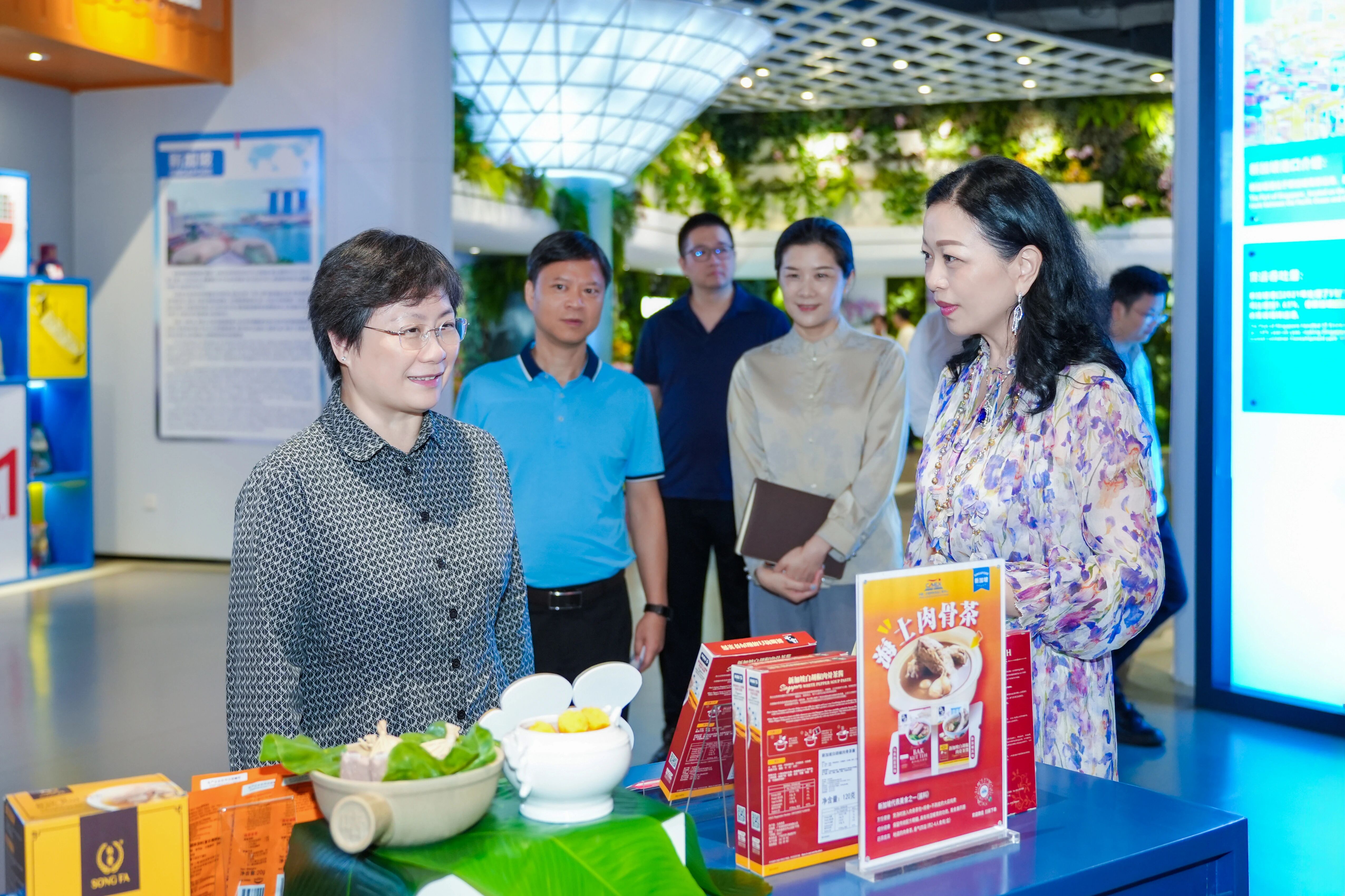 一同到訪的還有廣西演出有限責(zé)任公司董事、副總經(jīng)理朱富德、廣西廣文文化傳播有限公司副總經(jīng)理黃安妮。中國—東盟特色商品匯聚中心副總經(jīng)理盧春梅、中國—東盟特色商品匯聚中心副總經(jīng)理李丹陪同參觀。