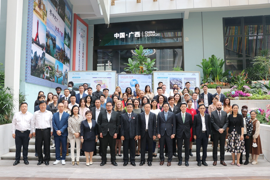 2022年10月16日至22日,中國共產黨第二十次全國代表大會勝利召開。為宣講大會的劃時代意義、重大成果和深遠影響,同時增進各國駐南寧總領事館官員、外籍專家、留學生、港澳人士代表對東盟國家投資企業(yè)及在桂重點項目高質量發(fā)展情況的了解,廣西壯族自治區(qū)外事辦公室(以下簡稱“自治區(qū)外事辦”)和廣西南寧市外事辦公室(以下簡稱“南寧市外事辦”)于11月18日共同組織自治區(qū)外事辦、南寧市委、南寧市外事辦、東盟國家駐南寧總領事館、港澳及僑胞代表等一行約90人到中國—東盟特色商品匯聚中心(以下簡稱“匯聚中心”)考察。廣西新中產業(yè)投資有限公司/中國—東盟特色商品匯聚中心董事長趙海燕會見了考察團一行。廣西新中產業(yè)投資有限公司/中國—東盟特色商品匯聚中心總經理施國維陪同考察。