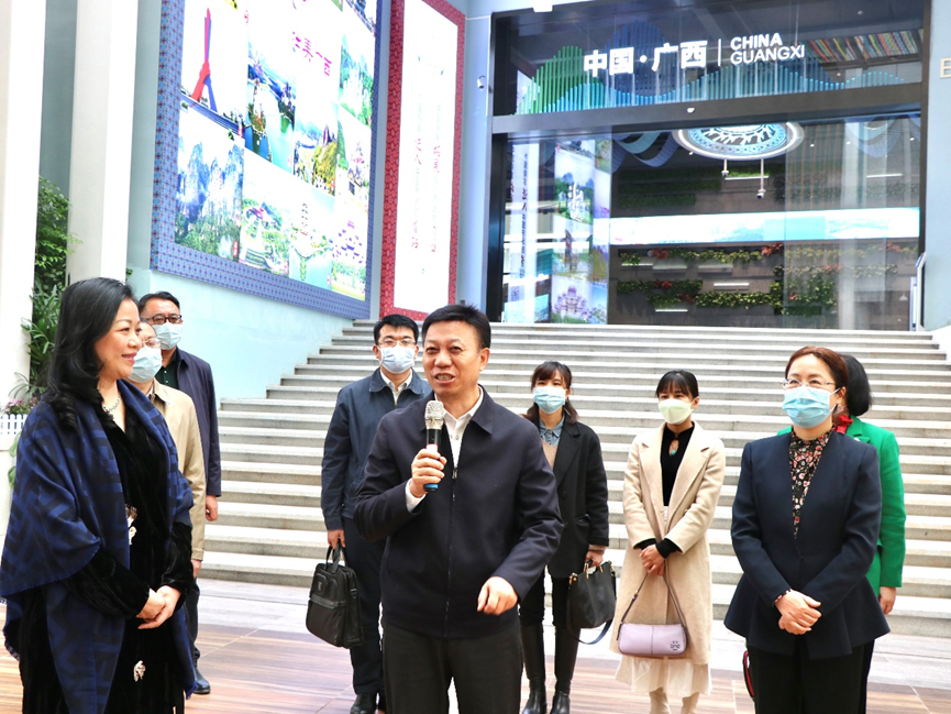 12月9日上午,廣西壯族自治區(qū)梧州市委書記蔣連生,廣西壯族自治區(qū)梧州市委副書記、梧州市人民政府市長鐘暢姿率隊到中國—東盟特色商品匯聚中心(以下簡稱“匯聚中心”)參觀,實地調研匯聚中心的發(fā)展情況。廣西新中產業(yè)投資有限公司、中國—東盟特色商品匯聚中心董事長趙海燕接待了調研組一行。