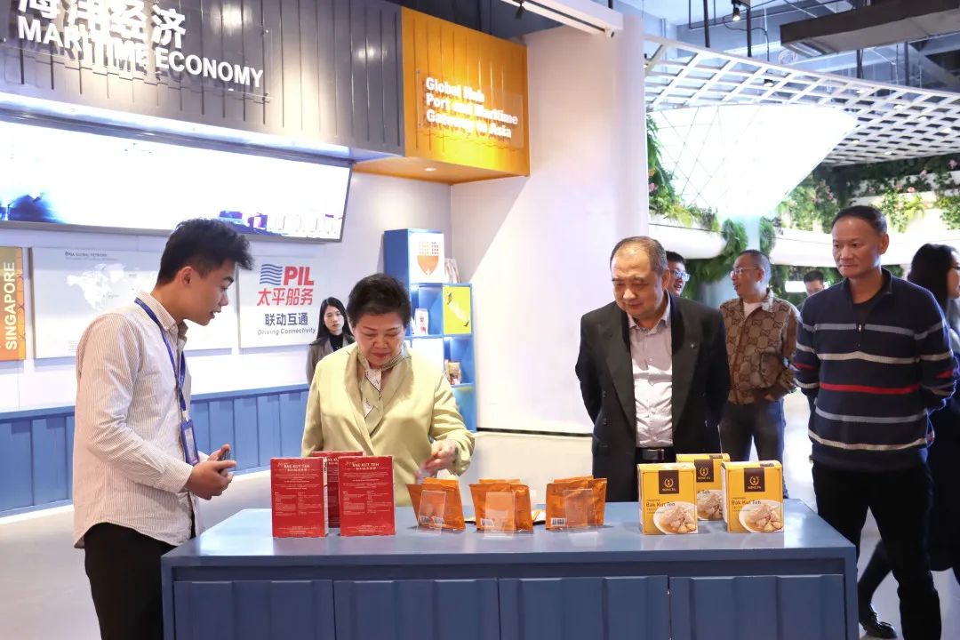 位于園區(qū)內(nèi)的中國(guó)—東盟特色商品匯聚中心,是中新南寧國(guó)際物流園與中國(guó)—東盟博覽會(huì)秘書處聯(lián)合重點(diǎn)打造的項(xiàng)目,致力于搭建中國(guó)與東盟、RCEP其他區(qū)域國(guó)家乃至“一帶一路”沿線重要國(guó)家經(jīng)貿(mào)往來線上線下一站式首選平臺(tái)。在參觀匯聚中心的過程中,考察團(tuán)聽取了展館的設(shè)計(jì)理念,對(duì)館內(nèi)琳瑯滿目的特色商品表現(xiàn)出濃厚的興趣。認(rèn)為匯聚中心線下展館不僅設(shè)計(jì)別出心裁,而且能夠通過線上平臺(tái)一站式購買各式東盟乃至RCEP其他區(qū)域國(guó)家的特色商品,比如新加坡的肉骨茶、泰國(guó)的醬料、澳大利亞的紅酒等,對(duì)商家及消費(fèi)者來說將是一種全新的沉浸式商貿(mào)體驗(yàn),同時(shí)匯聚中心提供的商品免費(fèi)展示空間,能夠降低入駐商家的運(yùn)營(yíng)成本,為企業(yè)提供了良好的服務(wù)平臺(tái)。